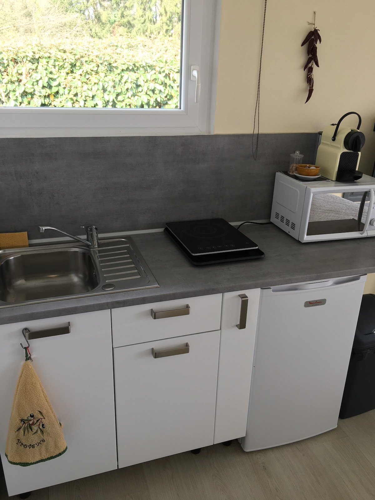 Kínálunk egy nagyon világos, 20 négyzetméteres stúdiót, amely egy független bejárattal rendelkező magánház mellett található. Csendes környék, biztonságos parkolás az ingatlanban.(A kapu távirányítója biztosított). Valódi 140x200 ágy (ágynemű biztosított) Teljesen felszerelt konyha (mikrohullámú sütő, hűtőszekrény, Nespresso, TV). NINCS MOSÓGÉP. Érkezés 16:00 Távozás 12:00 -ig TILOS A DOHÁNYZÁS HÁZIÁLLATOK NEM ENGEDÉLYEZETTEK (háziállatokkal nem lehet bejutni a szálláshelyre) Nincs PMR Studio
