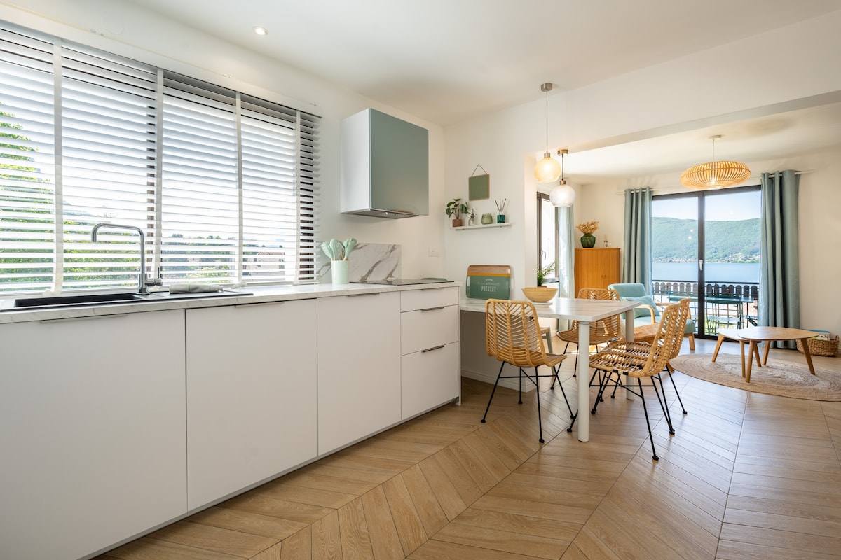 View lake 2, appartement entièrement rénové en 2022, vous offrira un magnifique panorama sur le lac d'Annecy. Son balcon exposé plein sud vous permettra d'en profiter pleinement. Idéalement situé, vous êtes à quelques mètres de la plage. Face à l'appartement, un ponton est accessible pour vos départs en paddle, canoë... Tout proche d'Annecy et de ses rues piétonnes, qui vous émerveilleront par leur vie et leur beauté. Un environnement privilégié entre le lac d'Annecy et le massif des Aravis.