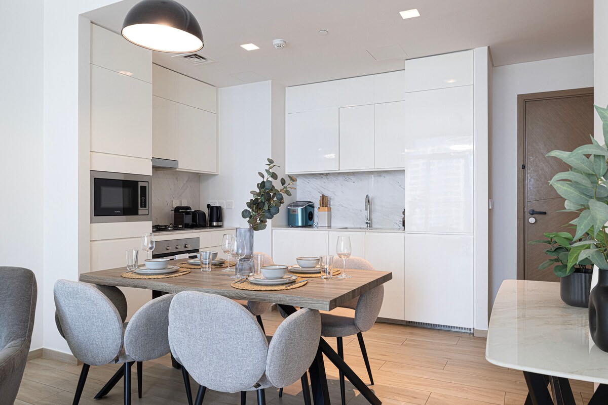 Ez a luxuskivitelű, egy hálószobás lakás kényelmes életet kínál minden szükséges kényelmi szolgáltatással a Dubai Creek Harbourban található The Grandben, Dubaj csodálatos területén. Élvezd az ingyenes hozzáférést egy fűtött medencéhez, kilátással, edzőteremmel és ingyenes parkolással. A nappaliban kényelmes kanapé és HD TV van Prime Videóval és AppleTV+ szolgáltatással! Az erkélyről CSODÁLATOS KILÁTÁS NYÍLIK. A lakás mindennel fel van SZERELVE, amire szükséged lehet, és örömmel biztosítunk mindent, amire szükséged lehet a szálláshelyen töltött időd során!