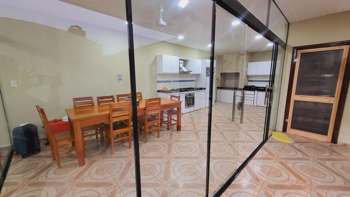 Pihenj az egész családdal ezen a csendes szálláshelyen. Ház zárt terasszal San Ignacio csendes területén, Guazú Misiones. 1 hálószoba tágas és felszerelt, saját kert, grillező, parkoló 2 jármű számára. Kisállatbarát