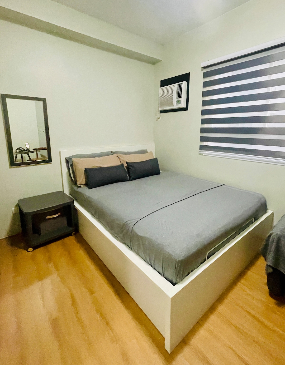 Élvezd a békés szállást ebben a minimalista stúdióban. Ez a hely tökéletes egyedül utazóknak, pároknak vagy üzleti vendégeknek, és kényelmet, praktikumot és nyugodt légkört kínál. A lakóegységen🛏️ belül: ✅ Tágas, queen méretű ágy ✅ Gyors Wi-Fi ✅ Okostévé Netflix-szel Könnyű főzéshez felszerelt✅ konyha 🏡 Szolgáltatások: ✅Két úszómedence ✅ Teljesen felszerelt edzőterem ✅ Nonstop recepció, klubház, játszótér, nyitott kápolna, tetőterasz és kocogóterület 🛒 Közvetlenül az ingatlanon kívül: 7-Eleven, mosoda és gyógyfürdő