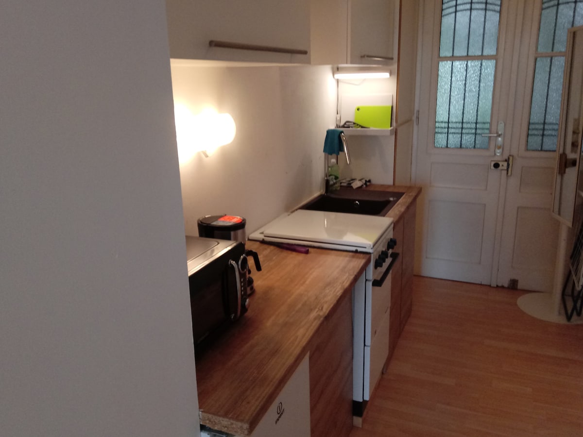 36 m² bright, quiet apartment in the courtyard on the 2nd floor with elevator. About 5 minutes walk from the old town center and the foothills of the Vienna Woods and about 15 minutes from the train station. A bus stop is located in the immediate vicinity. The morning sun wakes you up in the lovingly renovated and equipped Garçonnière with anteroom, closet space, bathroom with shower/toilet, and a living/sleeping room. The kitchen is separated. Pets are possible after consultation. NON-SMOKER!