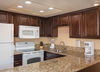 Almost year-round sunshine beckons you to Lake Havasu City — located on the Arizona shoreline of Lake Havasu — where the world-famous London Bridge crosses over to a small island in the Colorado River. One Bedroom: King bed in master, queen sleeper sofa in living area. Partial kitchen with microwave, two-burner cooktop and mini refrigerator. Maximum occupancy 4.