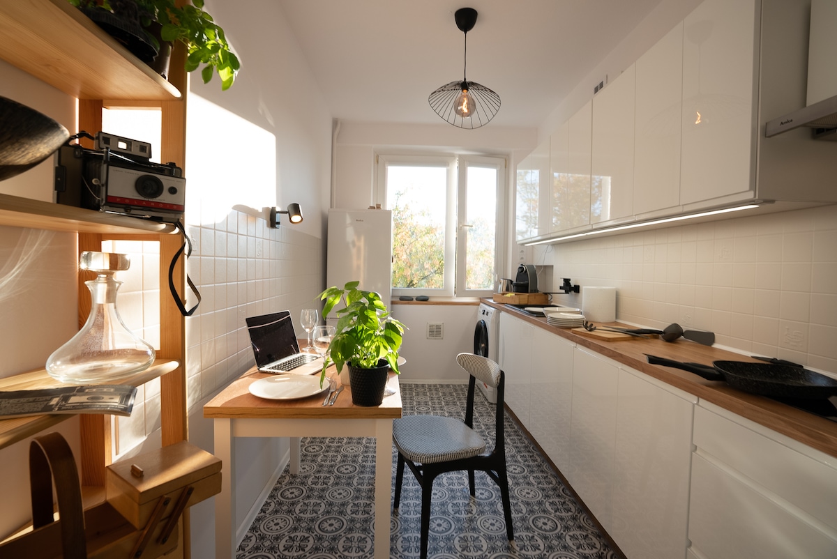 🎨 Üdvözöllek ezen a különleges művészi helyen Varsó legkifinomultabb kerületének szívében. Ez az avantgárd vintage lakás nyugalmat kínál a nyüzsgő kulturális élet közepette, néhány lépésre a város legjobb bárjaitól, éttermeitől, kávézóitól. Egy történelmi, háború előtti bérházban, saját bejárattal közvetlenül az udvarról. Ez az én szeretett otthonom, nem egy csiszolt szálloda. Olyan különlegességekkel és bájjal rendelkezik, mint a többi otthon. Lehet, hogy nem tökéletes, de valódi és karakteres.