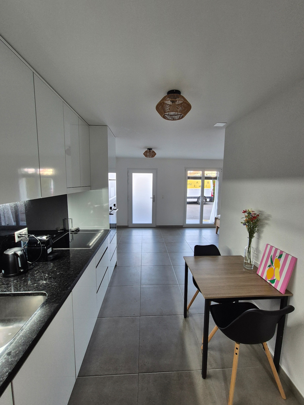 Bienvenue dans notre appartement moderne, niché au cœur d'un village paisible. Son atmosphère sophistiquée, moderne et élégante garantit un confort optimal. Découvrez de belles pièces avec un salon lumineux ouvrant sur un jardin à votre disposition de plus de 100 m2. L'extérieur offre un espace de stationnement pour deux voitures gratuitement, ajoutant une commodité précieuse pour l'exploration des environs. Réservez dès maintenant pour vivre l'authenticité moderne de notre chez-nous.