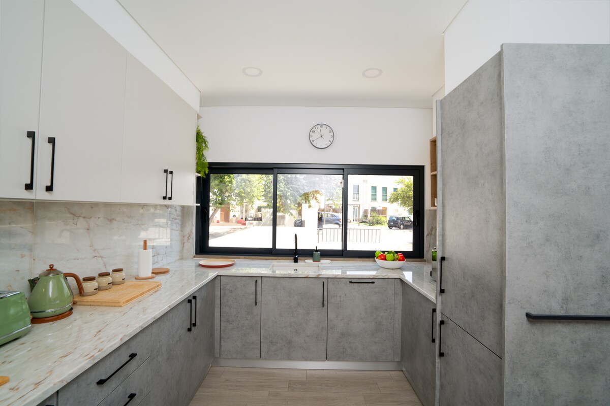 Vadonatúj, 3 hálószobás sorház Moncarapacho egyik békés lakóövezetében. Stílusos, modern és jól felszerelt, 3 king-size hálószobával, 2 fürdőszobával, egy kis privát medencével, szabadtéri étkezővel és egy napos tetőterasszal, ahol kényelmesen lehet üldögélni – ideális hosszú ebédekhez, naplementéhez vagy csillagnézéshez. Csak egy rövid sétára a bájos városközponttól, ahol nagyszerű éttermek és kávézók várják, és csak egy rövid autóútra Fuseta lenyűgöző lagúnás strandjától és a gyönyörű Armona-szigetektől.<br><br>Belső tér<br>