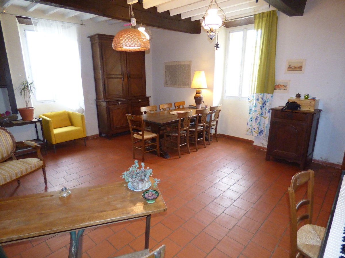 Venez en amis ! Entourée d'arbre et d'oiseaux, la maison vous accueille pour une halte nature au calme. L’étage, réservé aux hôtes vous offre un petit appartement de 45 m2 : chambre, salon, salle de bain, grand balcon donnant sur le jardin. Vous aurez la surprise d'un petit déjeuner raffiné au charme suranné, généreux, savoureux, aux parfums oubliés de l'enfance. Je suis raconteur de Pays, je vous emmène à la rencontre d’une région et de son histoire