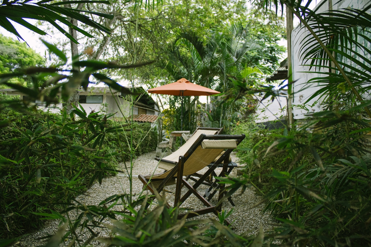 Nagyon csendes hely 10 percre Montañitától és a strandtól, a természetben vagyunk, van egy biokertünk, ideális hely a pihenéshez és a meditációhoz, a jógához, a szabadtéri sportokhoz, a növényültetéshez, a természetben való tanuláshoz, van egy édesvízi folyó néhány méterre, madármegfigyelés, kerékpározáshoz, van egy szabadtéri edzőterem, túrák a vízesésekhez a Dos Mangas községben, dzsungel körülötted, biozöldség-szüretelés.