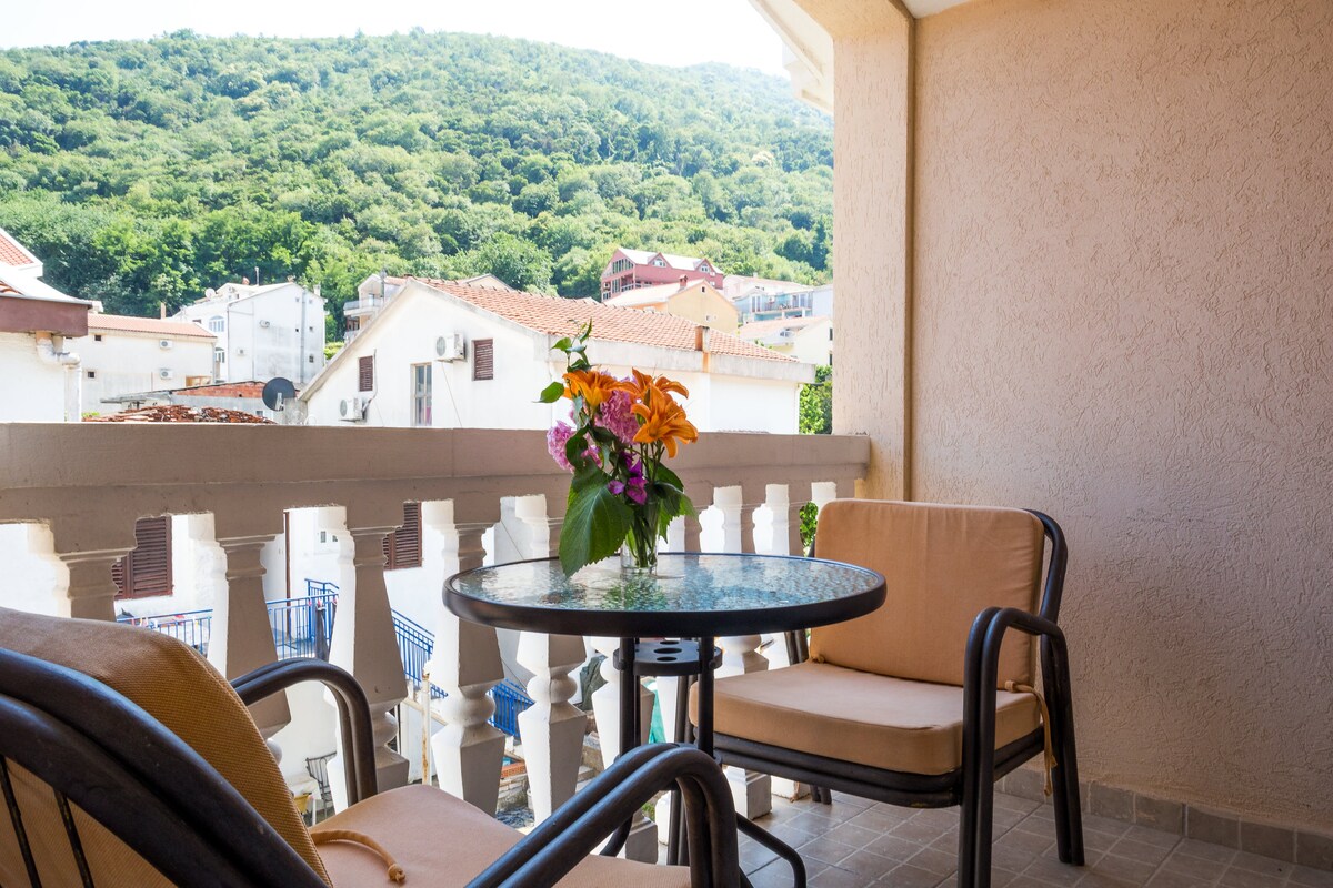 Az apartman 150 méterre a strandtól, és 15 perc sétára a régi város, boszorkány UNESCO védelem alatt áll. Az apartman nagyon kényelmes, felszerelt konyha, ingyenes Wi-Fi-vel és saját parkoló. A közelben piac, pékségek, gyorséttermek és taxi/buszpályaudvar is található. Kórház és gyógyszertár 50 méterre van a háztól. Repterek távolsága: Tivat 5km, Podgorica 40km és Cilipi (Horvátország) 42km. Nagyon csendes ez a hely. Apartman nagy terasszal, gyönyörű kilátással a tengerre.