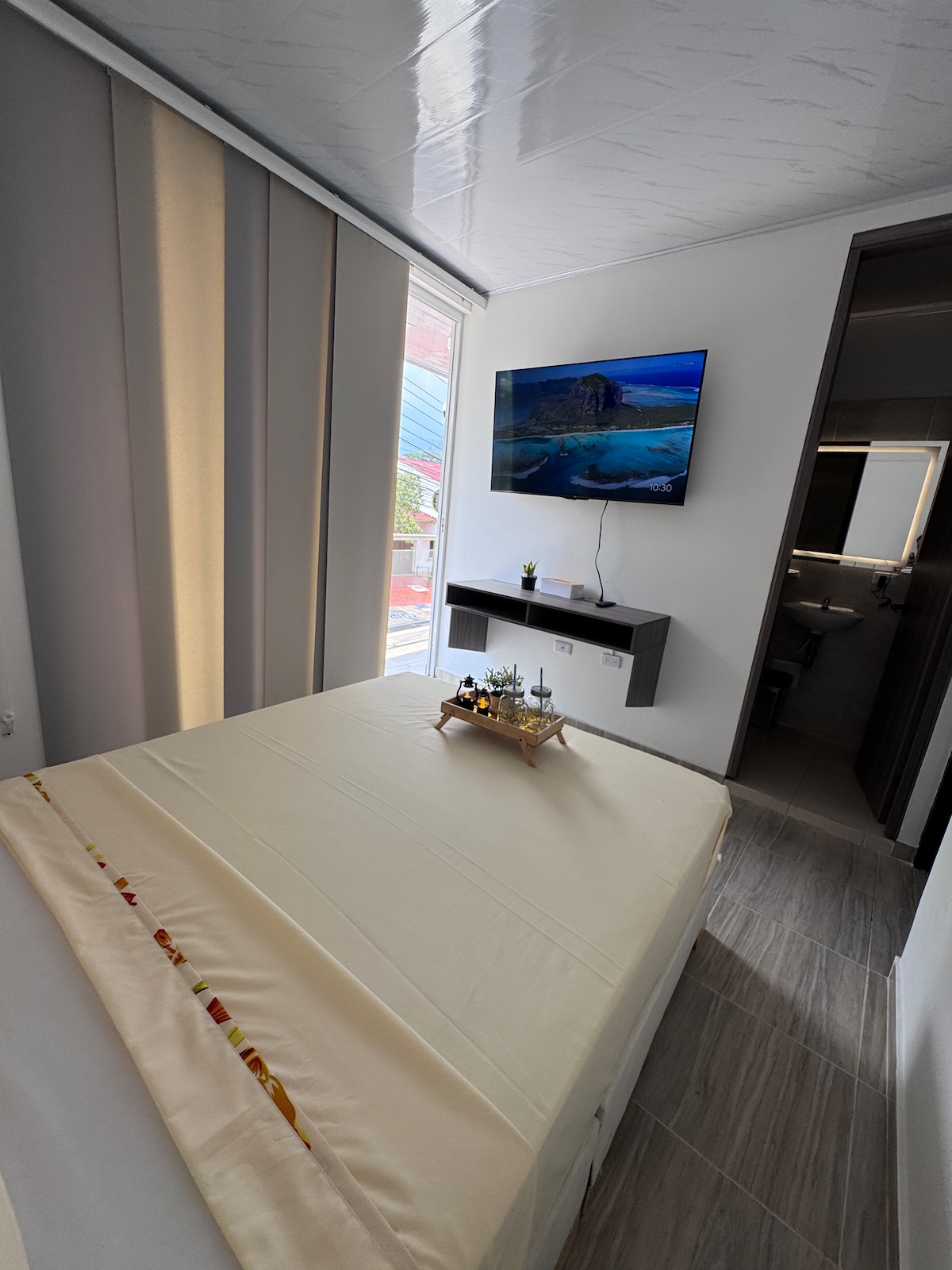 Parqueadero para moto 🛵disponible en la misma propiedad. A una cuadra hay parqueadero público para vehículos. Disfruta de un apartamento cómodo y funcional, ideal para parejas, familias pequeñas o viajeros de trabajo. Cuenta con 1 habitación cama queen, baño privado, cocina equipada, un agradable sofa cama para descansar y comedor para compartir. Tiene terraza, perfecta para tomar un café, leer o relajarte al final del día.
