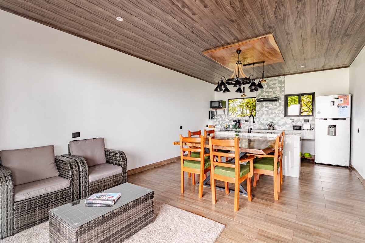 Ez a Monteverde szívében található hangulatos, 1 hálószobás, 1 fürdőszobás lakás tökéletes minden utazó számára. Kényelmes kanapéágyának köszönhetően akár 3 vendég is elfér benne, és verhetetlen elhelyezkedést kínál a falu főbb látványosságaitól és éttermeitől sétatávolságra. Élvezd a környék nyugalmát és Monteverde gyalogos felfedezésének kényelmét. Ideális egy pihentető kiruccanáshoz vagy természeti kalandhoz. Foglald le még ma a nyaralásodat!