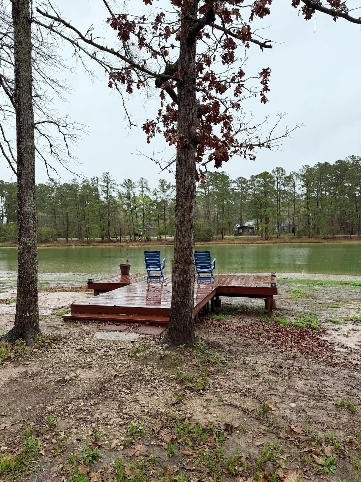 This is a great place to relax and unwind while enjoying the beautiful sunset and sunrise at the lake in Sam Houston National Forest with the geese, the ducks, and the birds, and keeping an eye out for the deer enjoying the lake. Once in a while an eagle and a hawk will stop by. There's plenty of yard for your furbabies to enjoy.