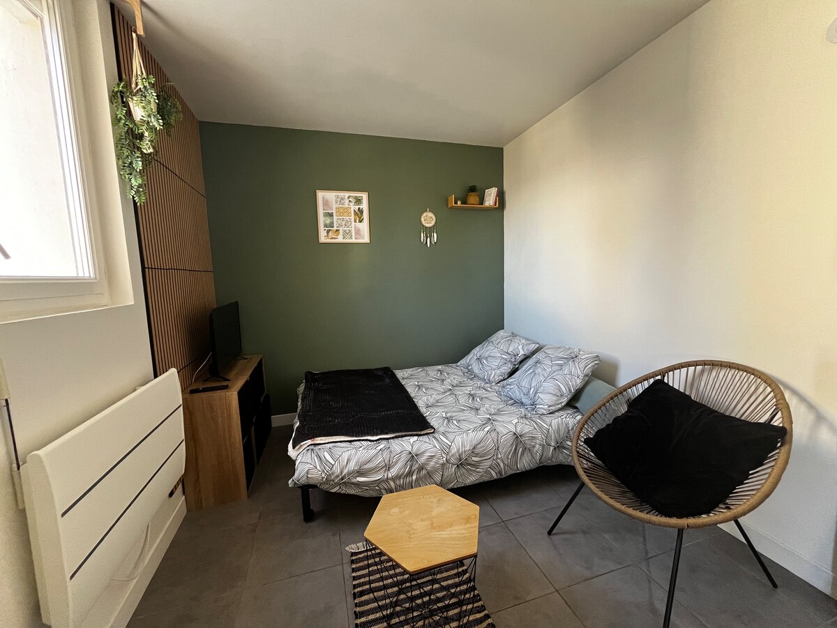 Kis stúdió (15 m2) csatlakozik a házunkhoz, önálló hozzáféréssel és kis terasszal, kilátással a kertre. - Közvetlen buszjárat az állomásra vagy az egyetemre, ingyenes parkolás - 50 m, őrzött strand Saint-Nazaire (a legaranyosabb a világítótorony) és a tengerparti bár nyáron, útja vámtisztek. 500 m, pékség, gyógyszertár, élelmiszerbolt, virágárus, fodrász, hentes és kávézó.