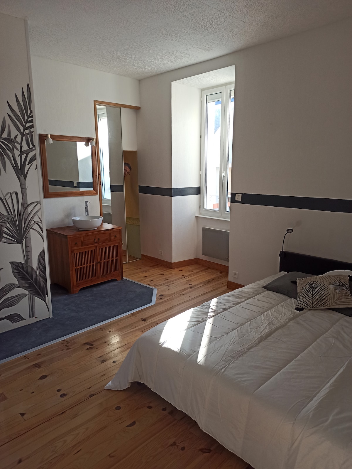 A lakásunk tökéletes helyen található Petit Marocban, Saint Nazaire legrégebbi környékén. A nappaliból figyelheted a csatorna zárjának működését és a hajókat (hajós mozgalmak). A város összes turistalátványosságát, a strandot és a város szívét, a Place du Commandót gyalog vagy biciklivel érheted el. A 40 m² -es felületének köszönhetően a konyha keletre néz, a kert felőli oldalon, a nappali és a hálószoba pedig nyugatra néz, ahonnan jól rálátni a tengerre és a lenyugvó napra.