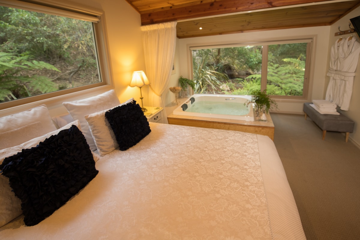 Ez a hangulatos házikó lélegzetelállító kilátást nyújt a Dandenong-hegységre és a buja Yarra-völgyre. A luxuskivitelű, king méretű ággyal és privát gyógyfürdővel (nyáron hűvösre, télen pedig melegre szabható) tökéletes romantikus kiruccanás. Élvezz egy pohár bort a verandán, miközben a lenyűgöző tájat élvezed, vagy pihenj a gyógyfürdőben a helyi látnivalók felfedezése után. Elbűvölő dekorációjával ez a kisház a tökéletes menedék a párok számára.