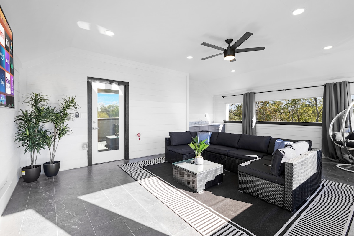 3,700 sq. ft 2 story townhouse smack in the heart of Montrose/Midtown. Less than a mile from downtown. Amazing view of skyline & 641 sq/ft rooftop deck w/ fire pit. Modern Luxury 3 bed, 3-1/2 bath. Sitting atop one of Houston's most raved about bars. Walking distance to dozens of restaurants, nightclubs and bars. Includes a 12 foot shuffleboard table, huge TV's & Soundbars. Private 2 car garage & driveway. Sleep Number beds in every room with their own bathroom en suite.