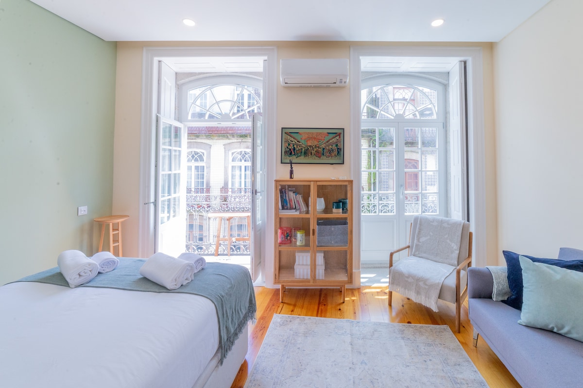 T1 Apartment with Terrace (Local Accommodation - Stories Factory). Kiváltságos elhelyezkedés Porto központjában, 5 perc sétára a Trindade metróállomástól (közvetlen összeköttetés a repülőtérrel), amelyet szupermarketek, éttermek, bárok és helyi termények szolgálnak fel, és kevesebb mint 20 perc sétára a város fő látványosságaitól. Kábeltévé, wifi, kanapéágy, saját fürdőszoba, felszerelt teakonyha, fizetős önkiszolgáló mosókonyha (épületbolt) és csomagmegőrző.