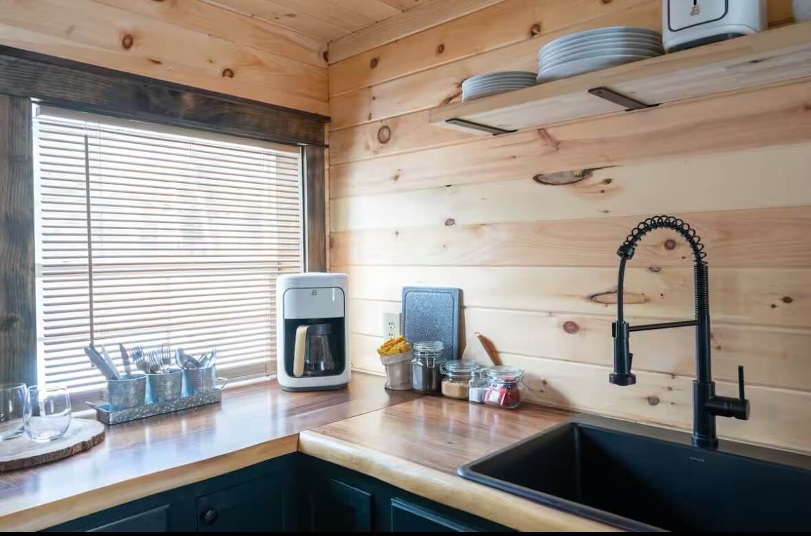 Glass Wall Waterfront Hot Tub Fireplace Tiny Home