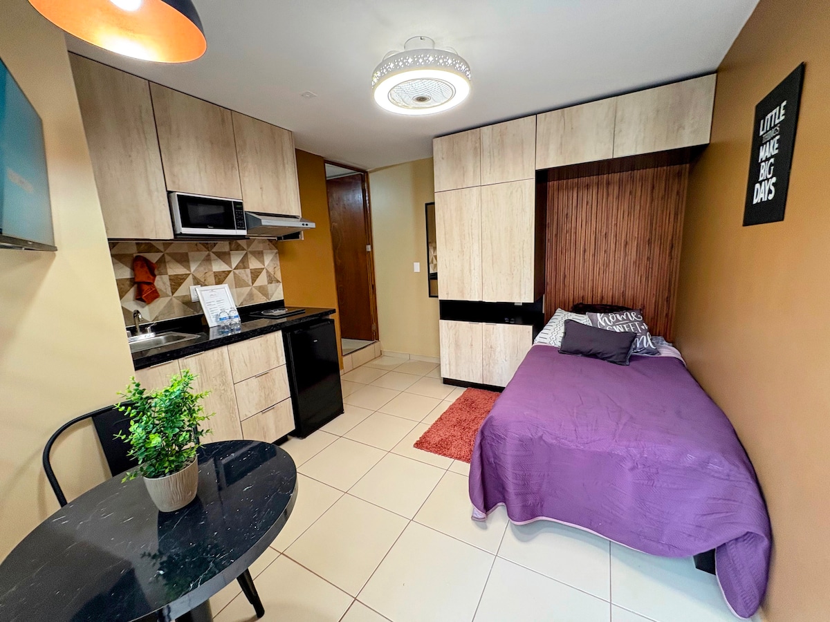 Pihenj ezen az egyedi és békés kiruccanáson. Sétálni vagy dolgozni jössz?? Ez a lehetőség neked szól. Loftlakás minden kényelemmel, hogy eltölthess egy hihetetlen szálláshelyet. Egy exkluzív területen, ahol a legjobb utakat és a város bármely pontját elérheted. Az apartman teljesen felszerelt, franciaággyal és egyszemélyes kanapéval, íróasztallal, Wi-Fi-vel, teljesen felszerelt konyhával, rekreációs területekkel és exkluzív parkolóval rendelkezik egy autó számára.