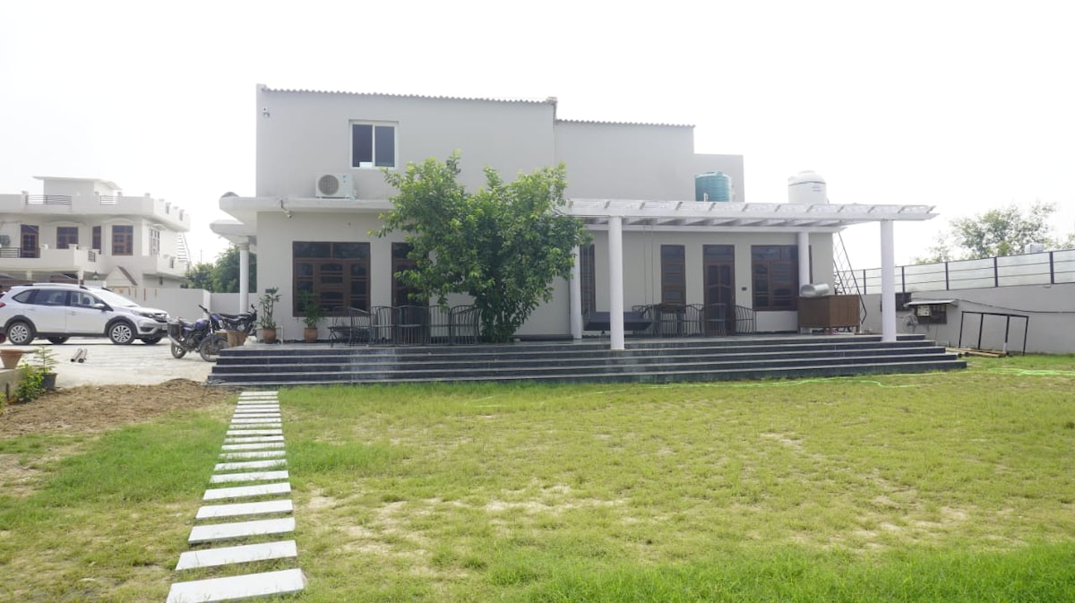 Hozd el az egész családot erre a nagyszerű helyre, ahol rengeteg a farmon. Élvezd a nagy medencét, a medence melletti grillezést, a friss zöldségeket, a luxusszállást, a wifit, az LCD-t minden szobában, a 3 BHK-szálláshelyet, a buja zöld kertet, a hintát, a Tubewellt. Számos tevékenység lehetséges a közelben, például a halgazdaság, a baromfifarm, a szarvasmarha-farm, az organikus zöldséggazdaság és még sok más. 25 km-es autóútra Chandigarh városától, és tökéletes hely egy kis összejövetelre és bulira a családdal vagy a barátokkal.