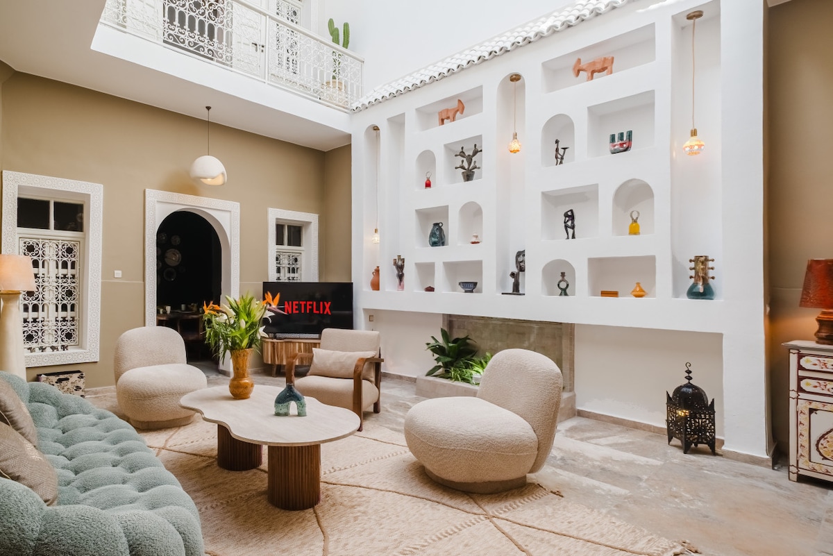 A városközpontban, éttermek, üzletek és kényelmi szolgáltatások közelében található tágas, világos apartman egyedi élményt kínál. Élvezd a privát pezsgőfürdőt, az elegáns dizájnt, a gyönyörű teraszt hintával és minden kényelmet: légkondicionálás minden szobában, felszerelt konyha, Netflix, tartalék ágynemű, vasaló és szárítógép. Minden úgy lett kialakítva, hogy tökéletes legyen az itt-tartózkodásod. A marokkói törvények és a házirend szerint a házasságon kívüli marokkói párok nem engedélyezettek