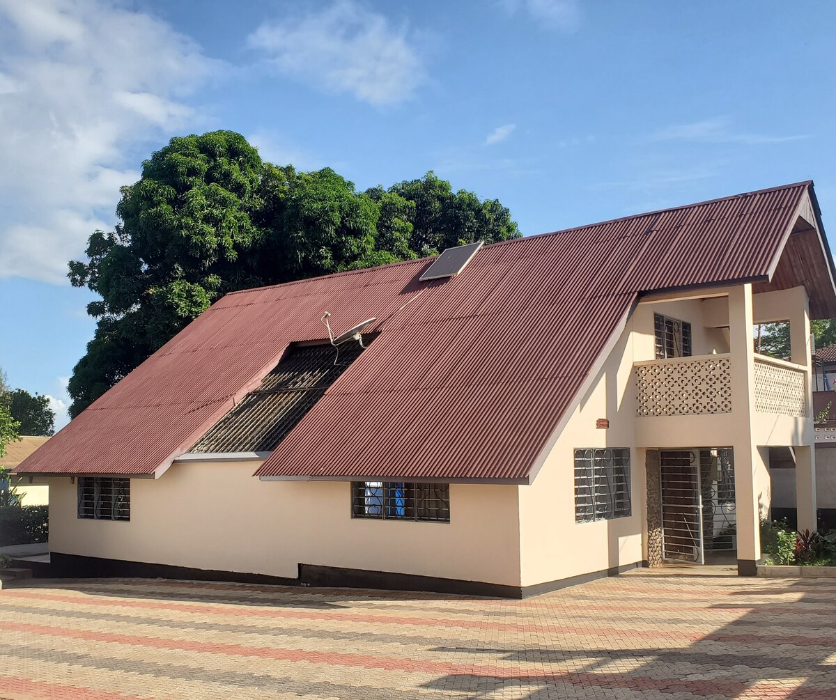 Békés, teljes otthon egy csendes környéken. Biztonságos, elkerített táborozóhely biztonsági őrrel, ingyenes parkolással a telken. Fedett veranda, hogy élvezhesd a kerteket és a szép időjárást. Földszint: két önálló hálószoba, nappali, konyha főzési lehetőségekkel és hűtővel, üzlet és nyilvános fürdőszoba. Az első szinten két további szoba és egy nagy, nyitott tér található. Könnyen elérhető tömegközlekedés. Kellemes kilátás a Kilimandzsáróra.