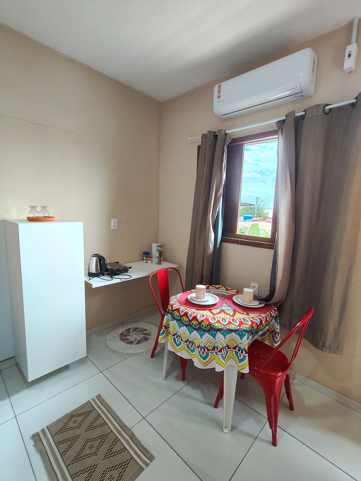 Seja bem-vindo ao seu refúgio perfeito! AP 2,5 KM do Centro e Estação das Artes, mobílias novas, quarto Cama Casal, TV, Rede, Ar condicionado para noites fresquinhas. Cozinha equipada com fogão cooktop, geladeira inox, micro-ondas, cafeteira, sanduicheira, perfeita para preparar refeições rápidas ou um café da manhã de Hotel. Banheiro limpo e funcional. Localização estratégica: próximo a restaurantes, mercados, pontos turísticos (Festas), Universidades, transporte público e muito mais!