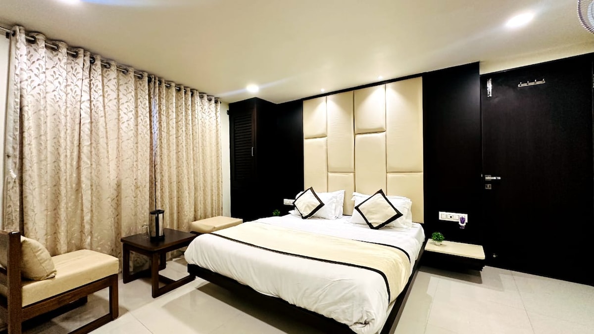 Our Super Deluxe Room at Kishan Villas A Boutique Stay is designed to offer a blend of luxury and homely warmth. The room features a spacious king-sized bed with premium linens, elegant wooden furnishings, and tasteful interiors that reflect a heritage charm. Step out onto your private balcony and enjoy serene garden views, fresh mountain air, and the calming greenery of Mount Abu. Equipped with modern amenities such as air conditioning, flat-screen TV, complimentary Wi-Fi, tea/coffee maker
