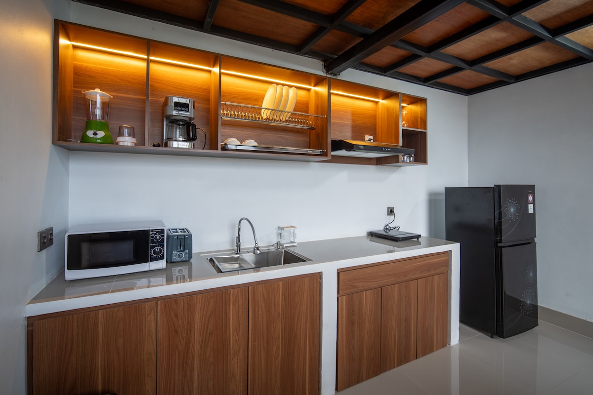 Üdvözöljük elegánsan kialakított vendégszobánkban, ahol a kényelem találkozik a stílussal. Ez a tágas szoba egy hangulatos, king méretű ággyal rendelkezik, kilátással a Batur-hegyre, lágy világítással és modern dekorációval, amely meleg és hívogató hangulatot teremt. A nagy ablakok sok természetes fényt engednek be, hogy megvilágítsák a helyet, a sötétítő függönyök pedig pihentető alvást biztosítanak.