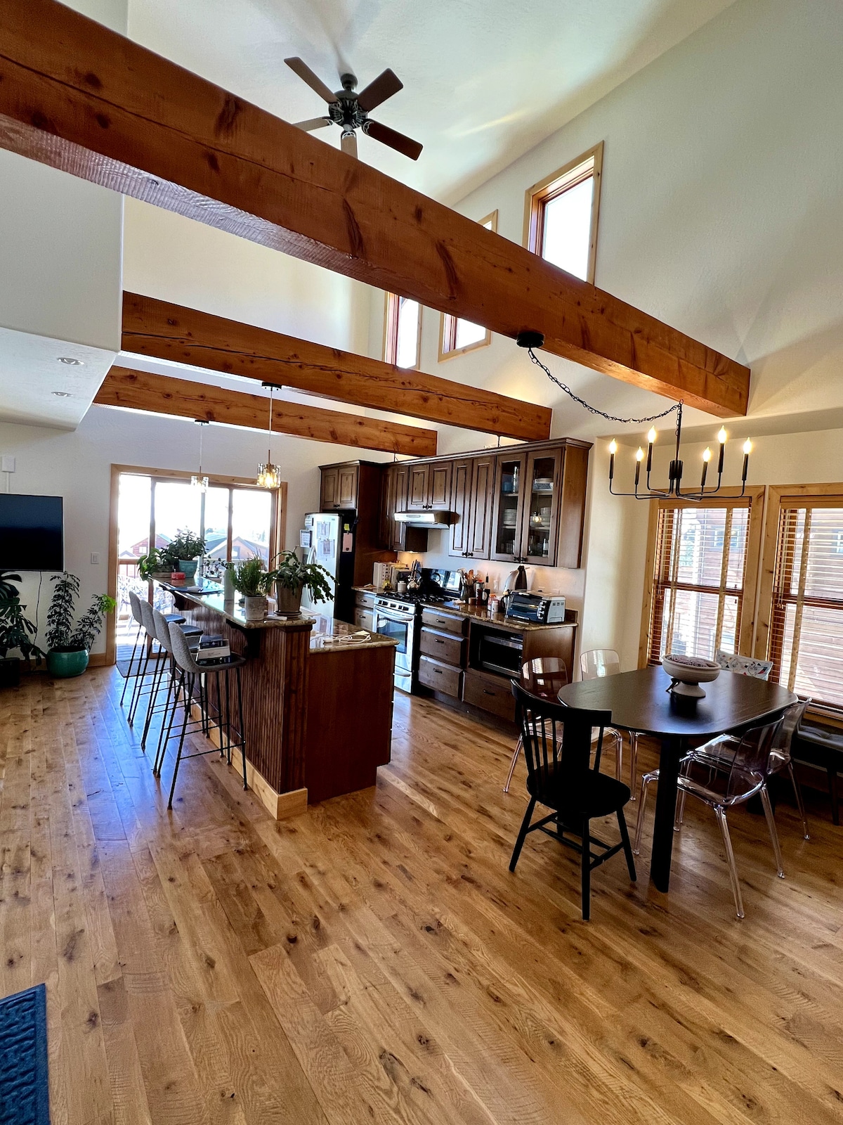 A fenséges Butte akadálytalan kilátása, ahelyett, hogy mások tetői fölött kellene kinézni, teszi ezt az otthont tökéletes helyszínné a kikapcsolódásra és a Crested Butte szépségének élvezetére. Tökéletes elhelyezkedés mindössze 7 percre a várostól és a sítereptől. Egy kerítésen osztozik egy farmmal, ahol szarvasok és rókák játszanak a vadvirágok között, néhány méterre a terasztól. Élvezd a privát horgászatot és vízi sportokat a Meridian-tónál, és egy rövid sétával a Long-tóhoz is eljuthatsz további horgászáshoz és vízi szórakozáshoz. Hozzáférés a túraútvonalakhoz a bejárati ajtótól.