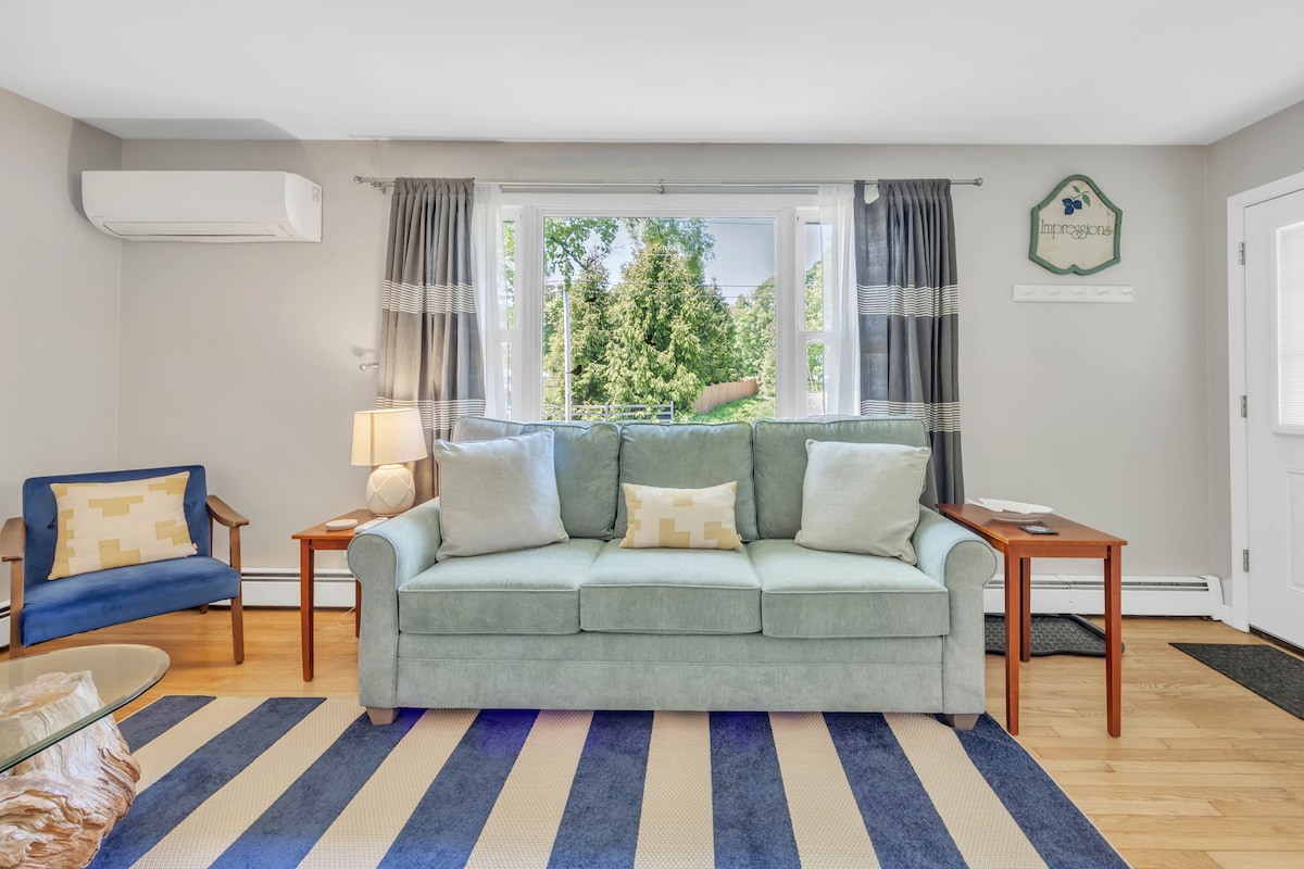 Freshly renovated home with modern amenities, including new appliances and furniture, and a cozy patio with a lawn for outdoor relaxation. Three bedrooms offer various sleeping arrangements, perfect for families. Situated in the quiet village of Northeast Harbor, it's a short walk to the ocean and downtown amenities like restaurants, bars, a gas station, and the grocery store. Acadia National Park trails are less than 5 minutes away by car, while Bar Harbor is a quick 20-minute drive