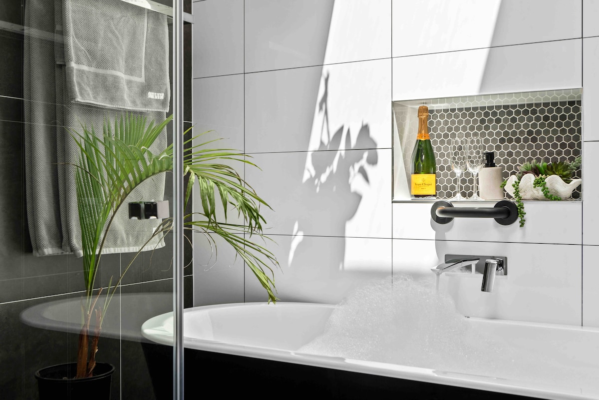 "Bliss" has all that you need in a luxurious spa villa for 2 getaway with private courtyard. 2 beaches at the end of our street & cafes & bars a 3 minute walk away Nothing beats the intimate double shower & spa followed by Netflix in front of a flickering fire after a day at the Beach, either Hot Springs or the wineries LGBTQ friendly, Workcation perfect - separate study with internet, desk & massage chair. Bliss’s also flexible for an infant with blackout blinds, cot & highchair incl.