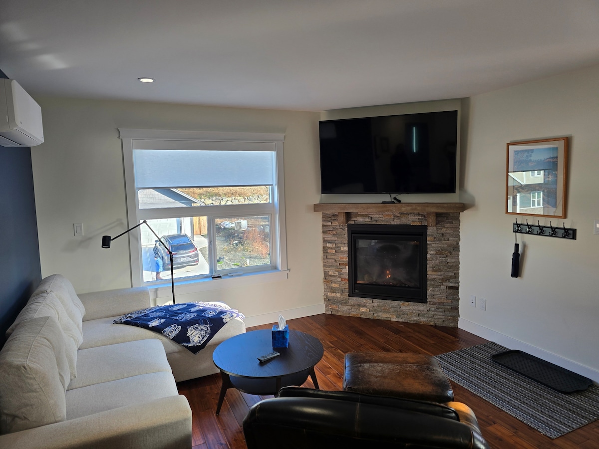 Relaxing, 2-Bedroom,3 bed, retreat in Duncan Spacious 1,100sq foot, suite 1 king bed, bedroom. 1 Queen bed,2nd bedroom. 1 Queen bed, Murphy bed. 3 beds in total. Pet friendly,enjoy a cozy livingroom with a fireplace, a full kitchen,and in-unit washer/dryer. Stay entertained with streaming services 55 inch tv. Board games,make the most of the large BBQ. 4 parking spots Located just 3 minutes from the new hospital and 6 minutes to downtown,this retreat offers comfort,quiet and convenience.