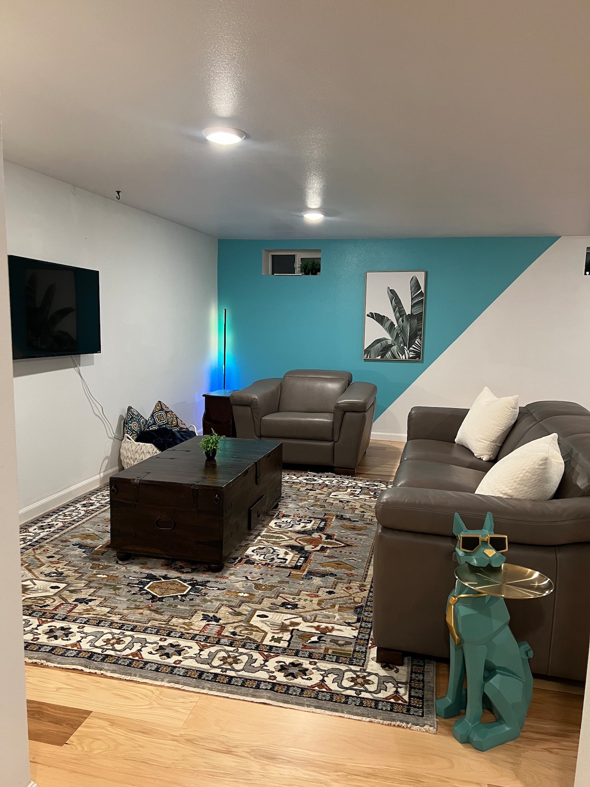 Spacious underground art suite/apartment in the sunlit basement of our 1926 bungalow in the lively SE Foster Powell Neighborhood. We partner with local artists to bring rotating artwork to the space. Enjoy a relaxing guest suite with a private entrance, parking and access to nearby food carts, restaurants, bars, galleries, and shops featuring local wares art & food. The space is a newly finished one bedroom modern guest suite with full kitchen, located in a quiet yet fun and funky neighborhood.