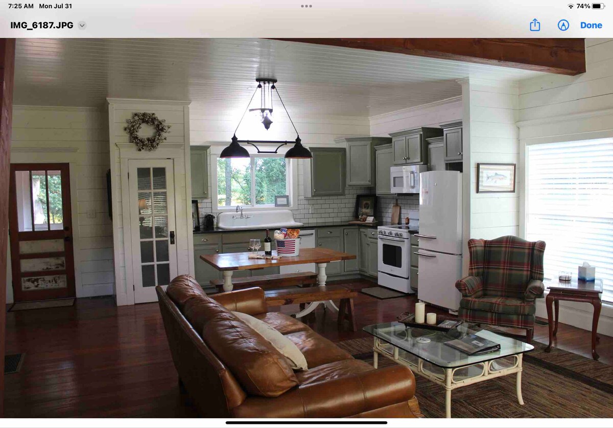 Menekülj ebbe a felújított víkendházba, amely 2 hektáron fekszik, és egy titkos kertszerű sétálóutcával rendelkezik! Élvezd a barátságos beszélgetést két különböző tűzrakóhely körül, kortyolgass kávét a verandán a nagy, fedett terasz alatt, vagy bújj össze a kandallónál egy jó könyvvel. Elmehetsz horgászni 5 percre a tóparti kikötőben, bebarangolhatsz a városba vacsorázni a téren, vagy megszállhatsz itt, és játszhatsz a hátsó teraszon. Ebben a víkendházban minden megtalálható, amire szükséged lehet a megérdemelt kiruccanáshoz!