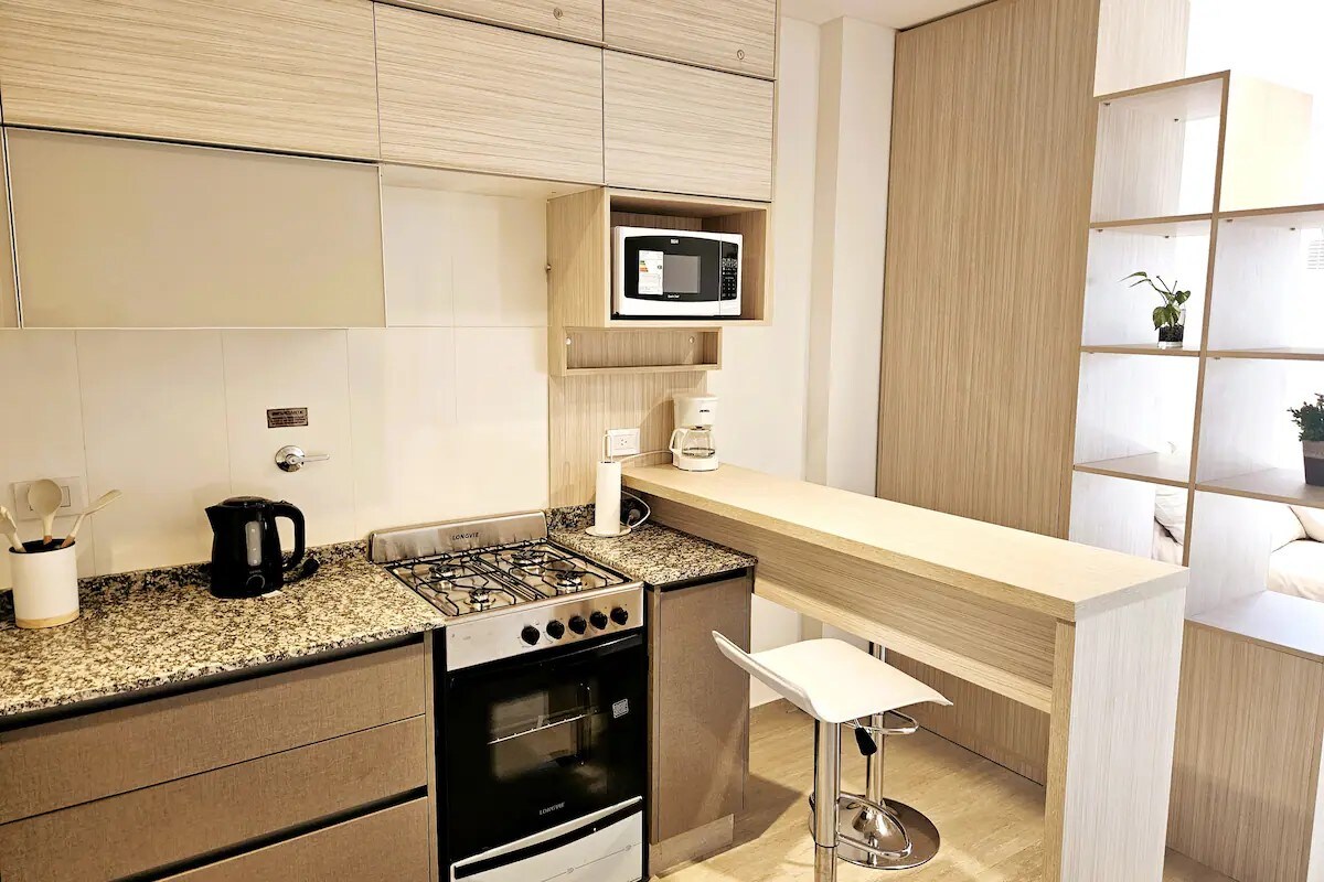 Modern stúdió Palermóban, Bs. Mint. saját erkéllyel és grillezővel. Ez az új lakás a kényelmet és a stílust saját terasszal és grillezővel ötvözi. Palermo szívében található a művészet, a dizájner üzletek és a trendi éttermek. Ráadásul parkok közelében leszel, ahol sétálhatsz vagy edzhetsz. Ez a hely nagyszerű hely arra, hogy kényelmesen és jó ízléssel éld át a porteñai életet.