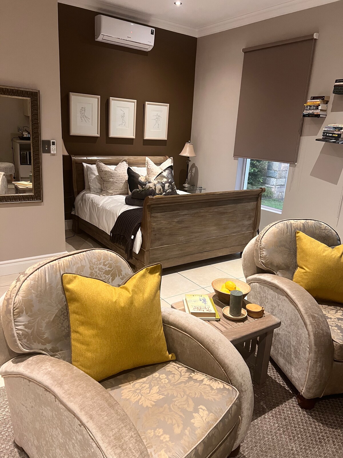 This luxurious spacious guest suite offers a comfortable and tranquil experience. It is situated in a security estate in the upmarket residential suburb of Lynnwood and is a perfect choice for business trips, visiting friends, a medical facility, academic institution, the theatre or sporting activities. The fast and reliable Wi-fi is ideal for business travelers, while its safe prime location and private outdoor area make it the ultimate short-term rental experience. Parking is free.
