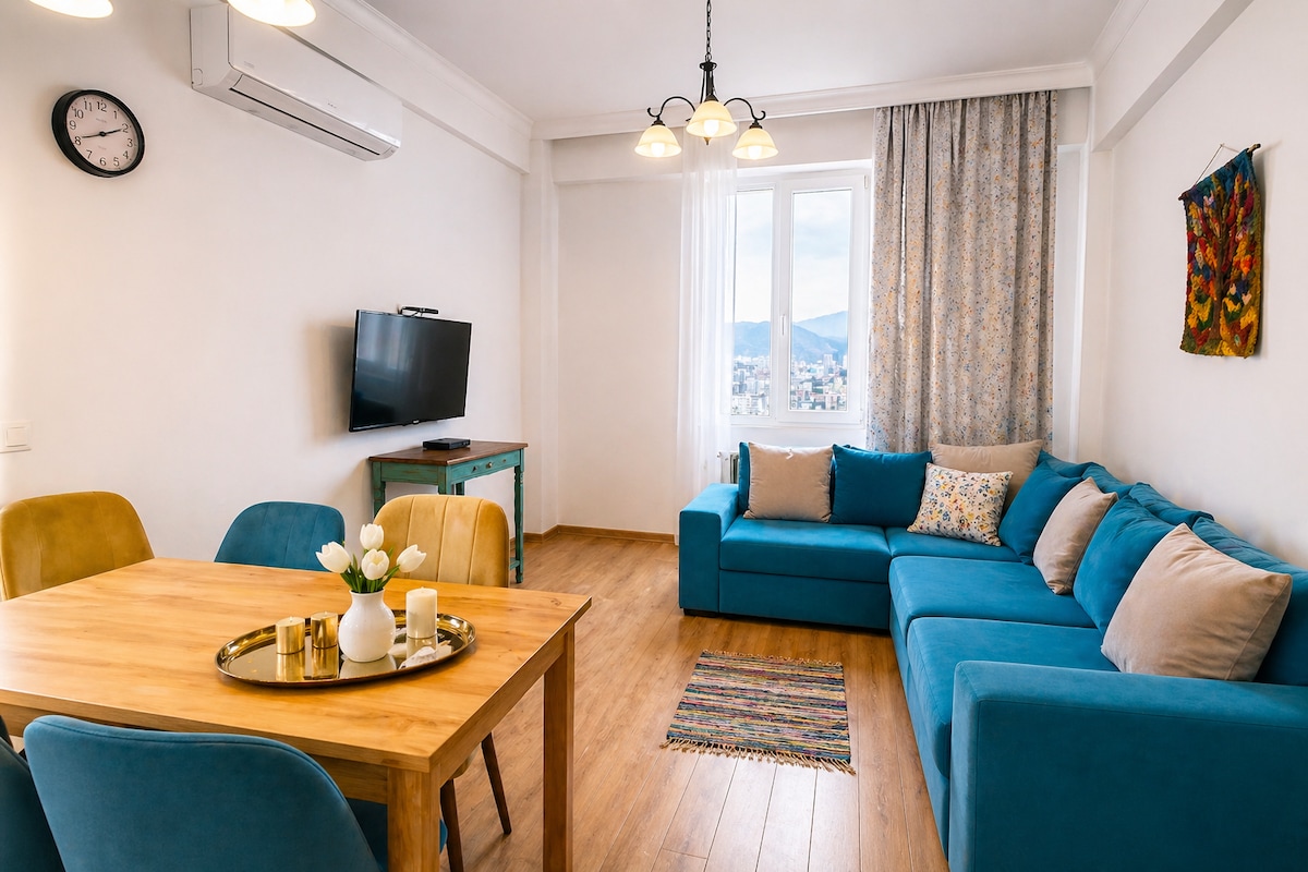 Hangulatos és kényelmes lakás terasszal, amelyet hagyományos és színes György-kori udvar vesz körül. Három szobája van, és Tbiliszi kulturális központjában található – közvetlenül a Konzervatórium mögött, ugyanabban az utcában, mint a Művészeti Akadémia. Az óváros és a Szabadság tér mindössze 5 perc sétára található. Bár a lakás Tbiliszi szívében található, békés és csendes. Érezni fogod a nyugodt tbiliszi élet varázsát, miközben a teraszon üldögélsz, és grúz bort kóstolsz.