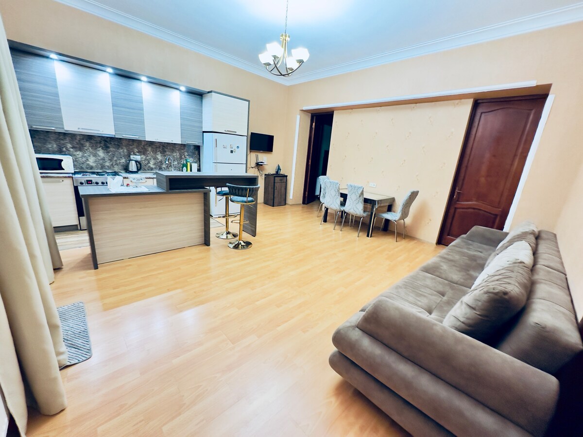 Az apartman egy újonnan felújított történelmi épületben található az óvárosban, amely Tbiliszi turisztikai központ, a Metro Freedom tér 150 méterre, a Rustaveli av. pedig 3 perc sétára található. A minőségi szálloda kényelmét kínálja, a hálószobában king méretű ágy, a második szobában pedig kanapéágy, éjjel-nappali érkezés és a házigazda szívélyes fogadtatása. Wi-Fi-vel, nemzetközi csatornákkal ellátott Smart TV-vel, légkondicionálóval, mosógéppel, mosogatógéppel, minden fürdőszobai és konyhai kellékkel rendelkezik.