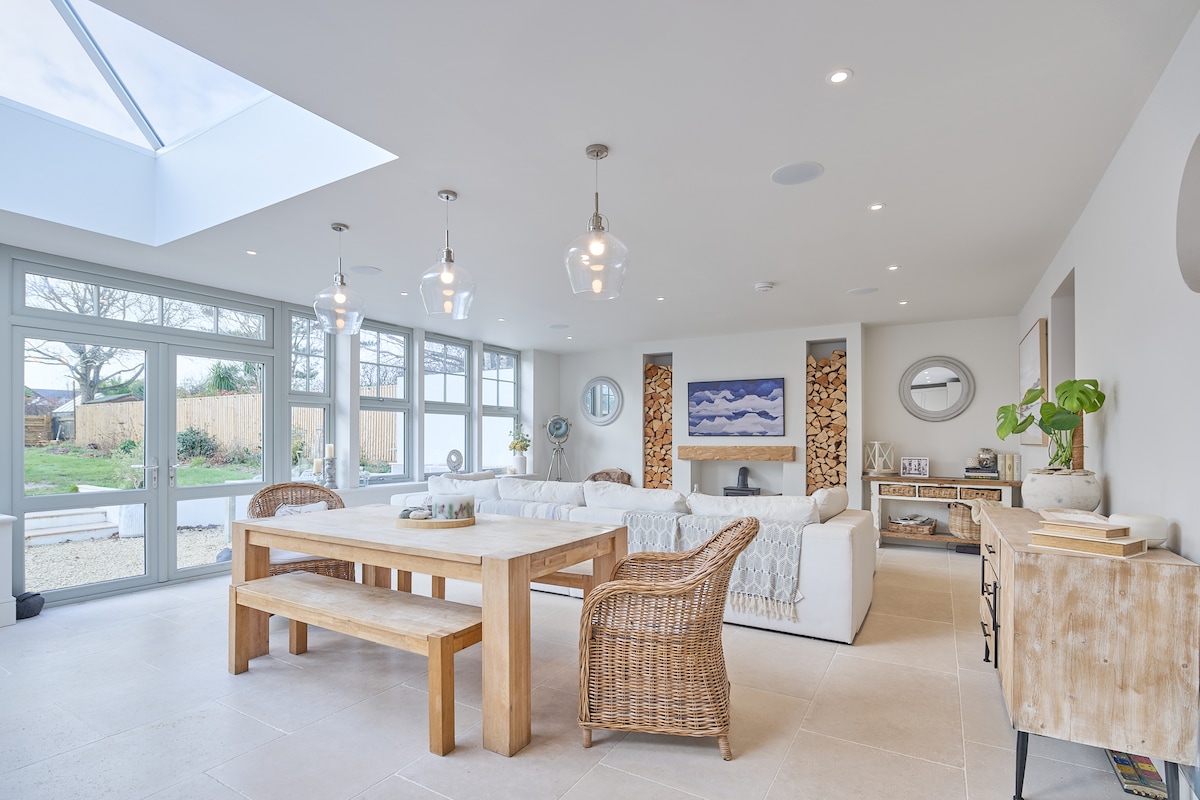 ☀️300 lépésre a Southbourne/Bournemouth strandtól ☀️ Legfeljebb 11 vendég, beleértve a kisbabát is (utazásra alkalmas kiságy mellékelve) ☀️Nagy, modern, elegáns, különálló ház ☀️Lélegzetelállító kilátás az öbölre ☀️Parkolás a helyszínen a sziklafalral szembeni út túloldalán ☀️Kültéri ülőalkalmatosságok ☀️Kisméretű állatok szívesen ☀️Családok: ✨ 2 perc sétára a családbarát kék zászlós strand ✨ Tengerparti WC-k, üzletek és életmentők a közelben ☀️Felnőttek: ✨ Könnyen megközelíthető bárok és kávézók ✨ Kutyabarát tengerparti séták A vízi sportokhoz való✨ könnyű hozzáférés