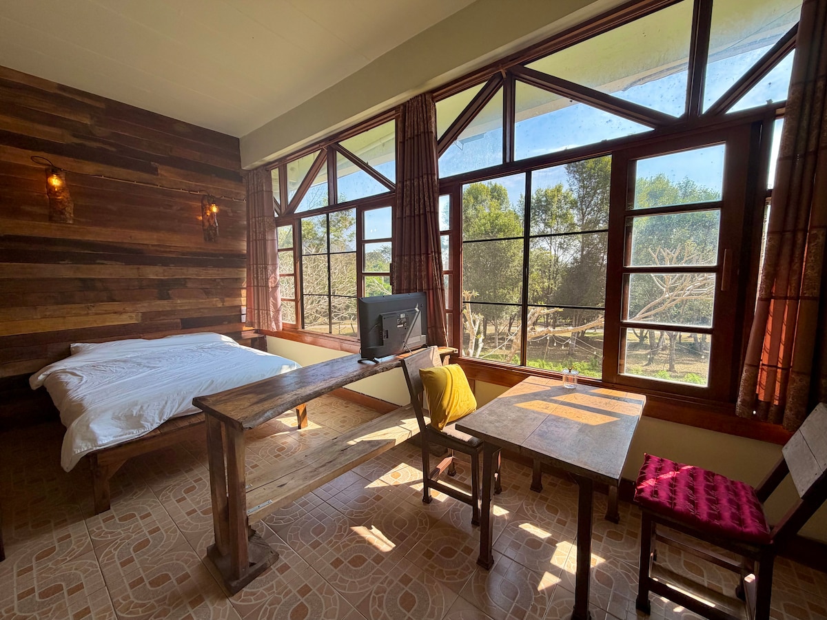 Szia! Fon vagyok. A családom és én helyi kávétermelők vagyunk Doi Mae Monban, egy lenyűgöző hegyvidéki területen, amely az akha törzs örökségéről és Thaiföld néhány legjobb kávéjáról ismert. Örömmel osztjuk meg veled ezt a különleges helyet! Mindössze 45 percre Chiang Raiből lélegzetelállító kilátást, békés környezetet és az autentikus Thaiföld ízét élvezheted. A szoba erkélyén pezsgőfürdésre alkalmas jacuzzi található. A szállás tartalmazza a délutáni teát, a vacsorát és a reggelit.