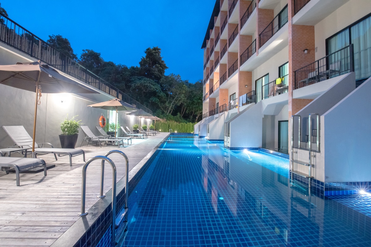 Cliff Room kiváló kilátással a medencére az Aonang Beachen – reggeli