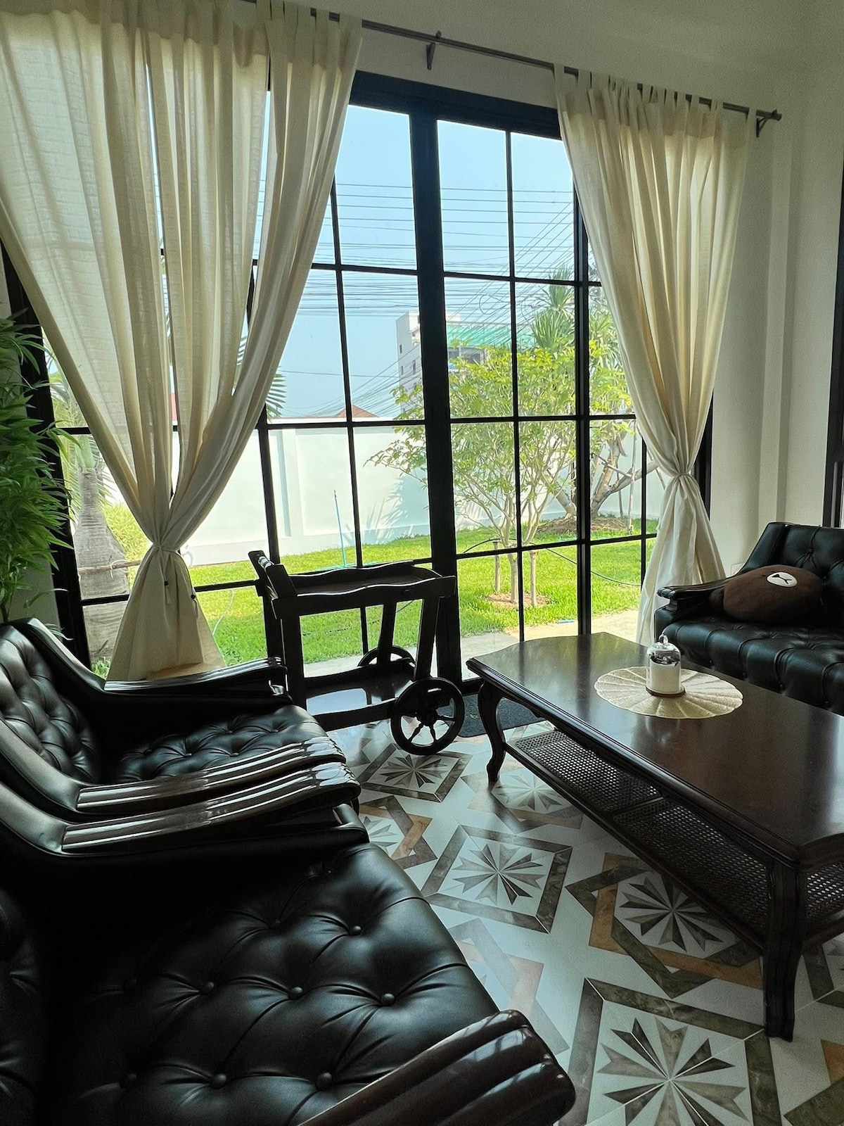 Élvezd ennek a gyönyörű, lélegzetelállító villának a modern és retró báját a maeklong-folyó partján. Tökéletes családi kikapcsolódásra rövid és hosszú távú tartózkodásra. Hatalmas kert a háziállatok számára. Egy csendes faluban található, 5 km-re a várostól, amely tele van éjszakai piaccal, kávézókkal és kocsmákkal. 16 km-re található a híres Amphawa úszó piac. A piac tele van tevékenységekkel, ételekkel, hajókázással