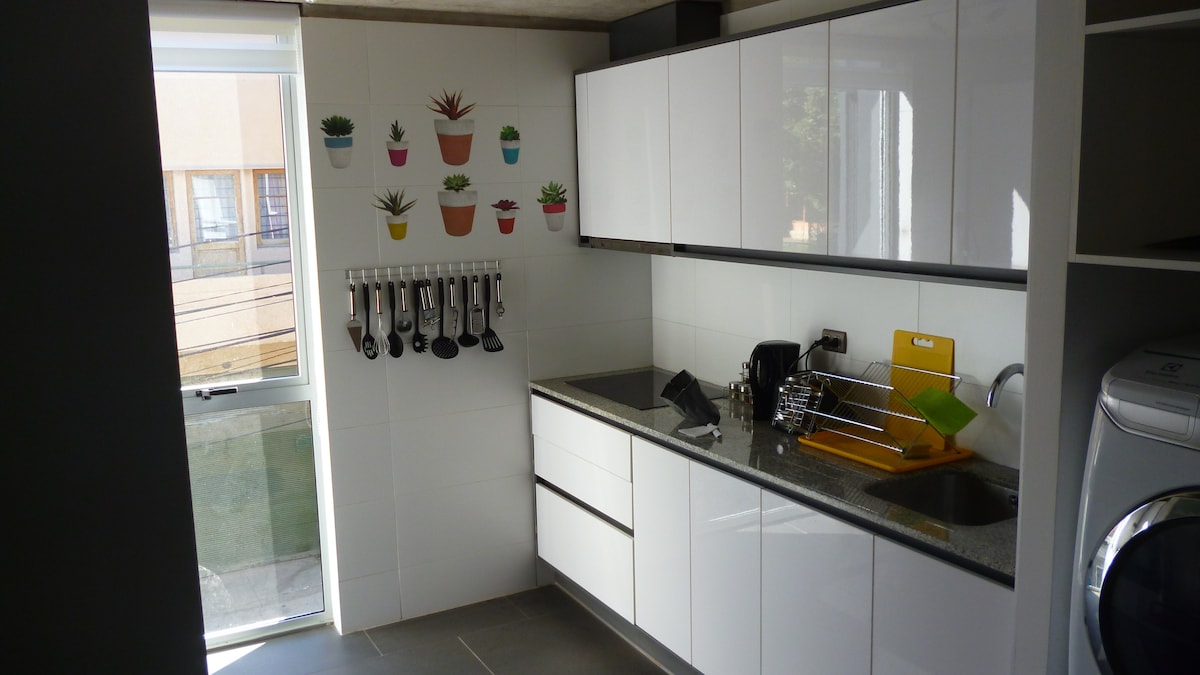 Kényelmes, otthonos, tágas és világos loftlakás. Terasszal és az öbölre nyíló részleges kilátással rendelkezik. Úgy terveztük, hogy az emberek pihenhessenek, és élvezhessék a tér teljességét és meghittségét. Valparaíso polgári központjától 100 méterre található, ahonnan könnyen megközelíthető a kereskedelem és a mozgás. 10 perc sétára van a Bellavista metróállomástól, 7 perc sétára a Cerro Alegre és a Concepción lábától, és 2 perc sétára a Cerro Bellavista lábától.