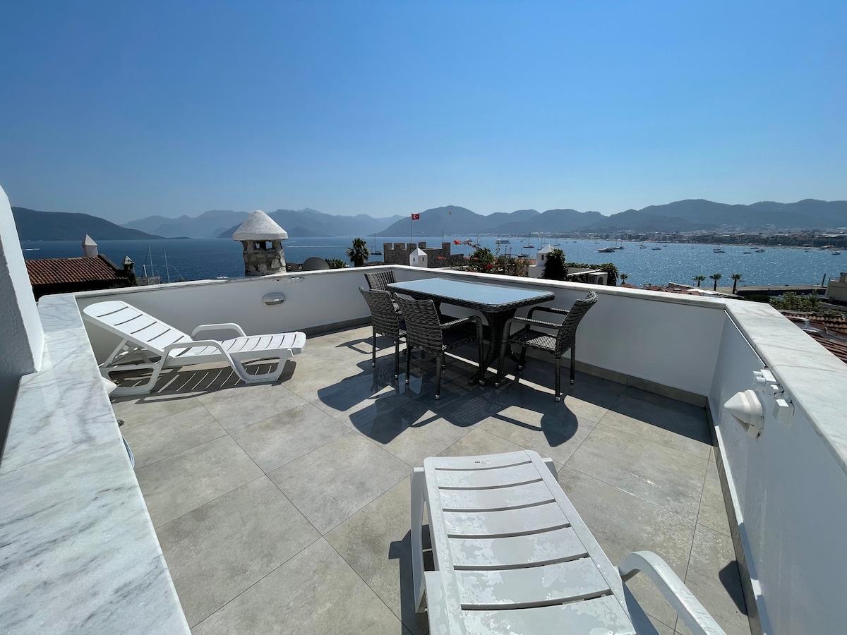 Egy kellemes nyaralás élmény várja Önt panorámás városi kilátással apartman központjában Fethiye. A Fethiye öbölre nyíló egyedi kilátást élvezheti, miközben a pezsgőfürdőnkben kortyolgatja italát. A 4 szobás apartman erkélyes területe körülbelül 70 négyzetméter. Köszönhetően a fürdőszoba és WC található mindkét emeleten, 2 család egy nagyon kényelmes nyaralás egymástól függetlenül. Az Ölüdeniz úton található saját parkolójával arra törekszünk, hogy nyaralását szeszélyes élménnyé varázsoljuk.