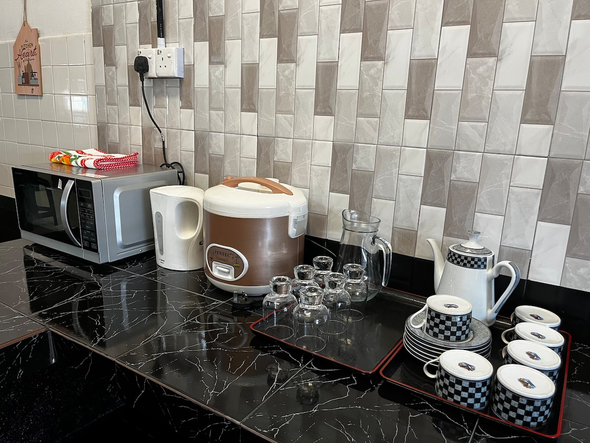 Szállj meg Kota Bharu szívében, és élvezd a tökéletes kényelmet. A KB Mall és az UTC rövid sétára található, így autó nélkül is vásárolhatsz, étkezhetsz és hozzáférhetsz az alapvető dolgokhoz. Rengeteg étkezési lehetőség vár rád. Ez a teljesen felszerelt, légkondicionált lakás franciaággyal, kanapéággyal, 43 hüvelykes okostévével, mosógéppel, hűtőszekrénnyel, vasalóval, erkéllyel és 100 Mbps sebességű, nagy sebességű üvegszálas internettel rendelkezik – tökéletes munkához vagy otthoni pihenéshez.