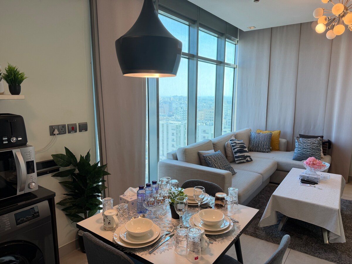 Fedezd fel a tökéletes kiruccanást ebben a lenyűgöző, bútorozott, egy hálószobás szobában a 35. emeleten, amely modern eleganciával, teljesen felszerelt konyhával és lélegzetelállító kilátással büszkélkedhet a privát erkélyekről. Élvezd az olyan kényelmi szolgáltatásokat, mint a mozi, a külön edzőtermek (férfiak/nők), a szauna, a gőzfürdő, a közös úszómedence/jacuzzi, a kocogópálya és a grillező. Bár az üzletek és éttermek mindössze öt perces autóútra találhatók, a környék nagyon békés. Kényelmet és stílust kínálunk egy emlékezetes tartózkodáshoz Bahreinben.