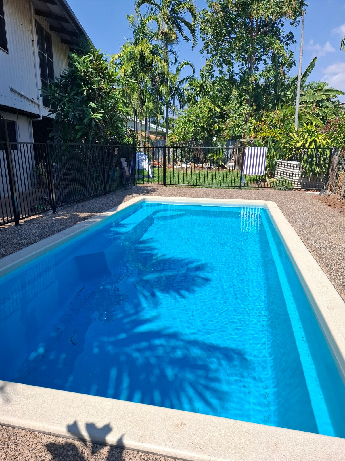 A tropical suburban house under 10 minutes from Darwin Airport and less than 5 minutes drive to Casuarina Shopping Square, Dripstone Beach and Leanyer Water Park! The house is sorrounded by palm trees and lush bushes, which create a cooler environment during the hot daytime hours. A gentle breeze almost always flows up toward the elevated home, adding to the comfort. Please note: Every morning you may hear the sound of our chickens and cockatoos-a lively part of a tropical setting.