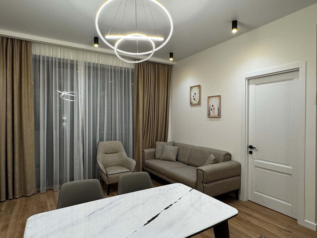 🌅 Élvezd a hangulatos, újonnan felújított lakást nagy, napos erkélyrel a békés Didi Dighomi városában. 🛋️ Teljesen felszerelt, kényelmes hálószobával, praktikus konyhával, Wi-Fi-vel és okostévével. 🍷 Tökéletes a pihenéshez reggeli kávéval vagy esti borral. 📍 Tökéletes helyen, üzletek, kávézók és a Tbilisi Mall közelében. Élelmiszerbolt az első emeleten. A városközpont, a klinikák és Mccheta🚗 gyors elérése ideálissá teszi a turisták, az egészségügyi turisták és az üzleti utazók számára, akik kényelmet és otthonos légkört keresnek.
