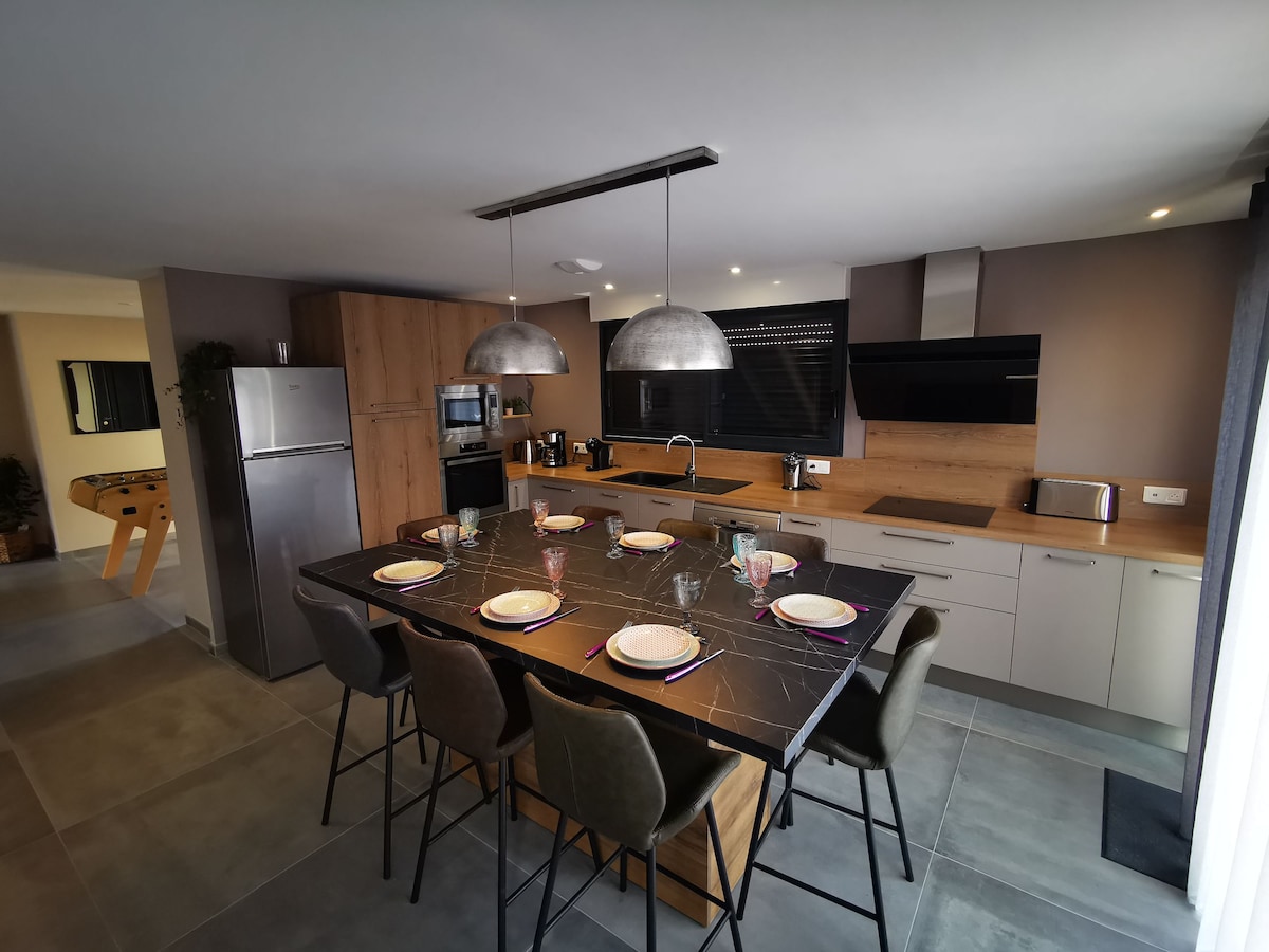 Éveillez vos sens face au Mont-Saint-Michel. Classé 3 étoiles et certifié Qualidog, ce cocon de plain-pied niché entre mer et campagne offre une vue imprenable à 180° sur la baie. À l'intérieur : 2 chambres douillettes, cuisine équipée, salon avec poêle à bois et canapé-lit. La véranda inonde l'espace de lumière, le baby-foot Bonzini et le jardin arboré invitent à la détente. Un refuge rare, entre élégance, sérénité et moments inoubliables - le tout accessible aussi à votre compagnon à poil.